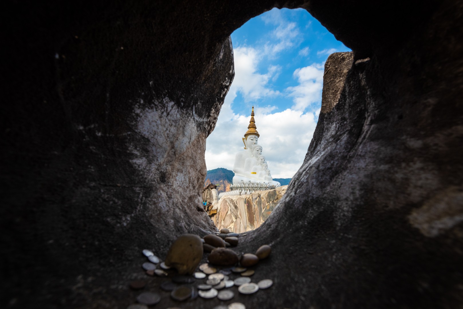 แลนด์มาร์คบนเขาค้อที่สวยราวกับสรวงสวรรค์ โดดเด่นด้วยพระพุทธเจ้า 5 องค์สีขาวลดหลั่นกัน และเจดีย์ที่ประดับประดาด้วยเครื่องเบญจรงค์อย่างวิจิตร ยิ่งช่วงที่มีทะเลหมอกลอยมาปะทะ บอกเลยว่า Feeling เหมือนอยู่บนสวรรค์จริงๆ